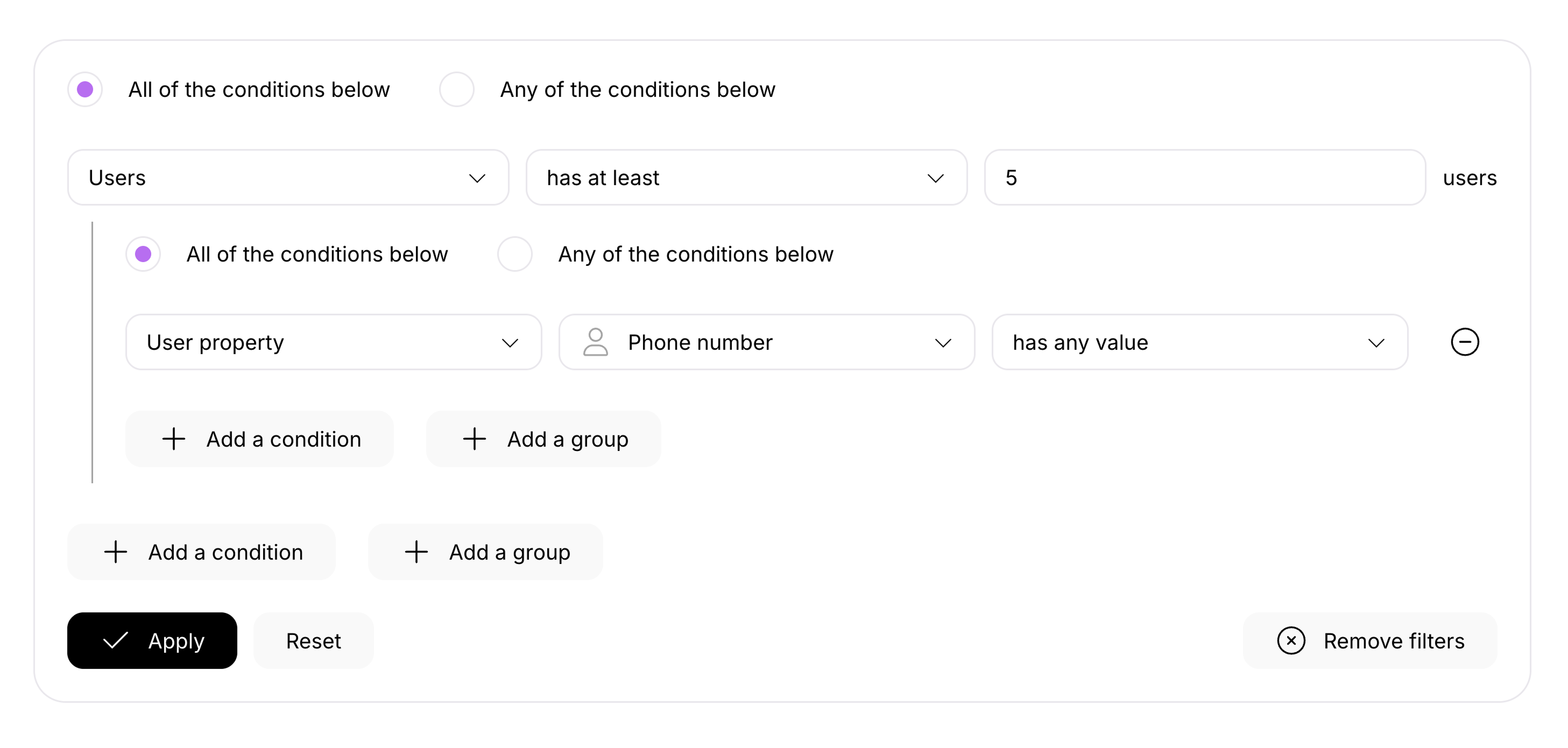 Proper company support makes Userlist different from traditional email marketing tools, which only handle individual users. This feature allows you to: